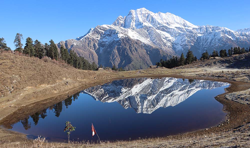 रुकुमपूर्व । वारि हिमाल, पारि हिमाल । सिस्नेसँगै टल्किएको द्धवारी हिमाल । हिमालै–हिमालको बीचमा साना–ठूला पहाडका थुम्का । अनि तिनै थुम्काको बीचमा टिलपिलाइरहेका दह, सानो गुप्ता र ठूलो गुप्ता । तिनै दुई गुप्तामा मुस्कुराउँदै फुलेको सिस्ने हिमाल । मनै लोभ्याउने सुन्दर दृश्य ।