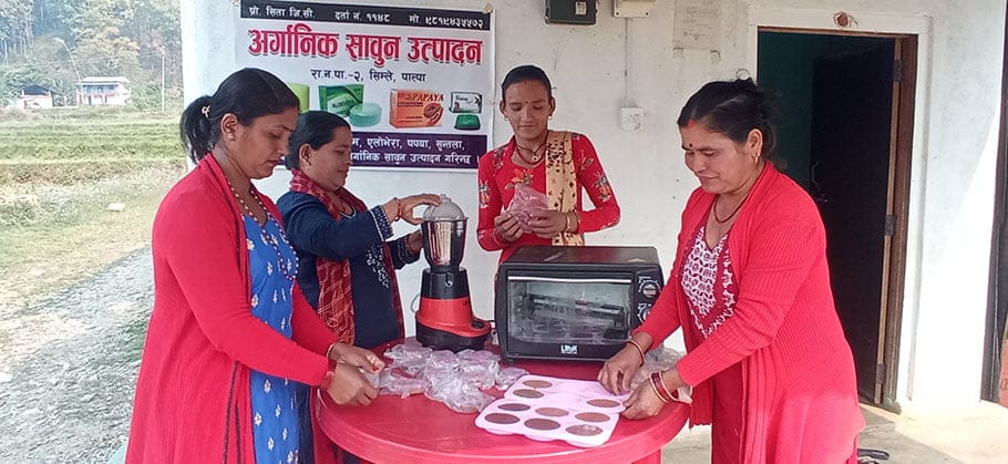 रामपुर नगरपालिका–२ स्थित सिम्लेमा ‘अग्र्यानिक साबुन उद्योग’का नाममा समूहमा महिलाले नुहाउने साबुन तयार पारिरहेका छन् । साबुन बनाउने छ दिनको तालिम नगरपालिकाले दिएपश्चात समूहमा मिलेर अहिले साबुन बनाउन थालेको अध्यक्ष सीता घर्तीले बताईन् । “स्थानीय उत्पादन भएकाले गाउँघरकै ग्राहकले खरिद गरिरहनुभएको छ, गाउँमा राम्रै खपत भइरहेको छ”, उनले भनिन् ।