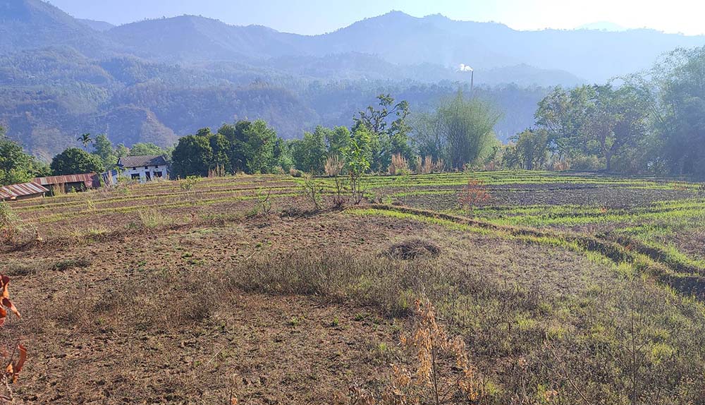 माथिल्लो बारीमा पर्ने करिब तीन रोपनी जग्गा तीन वर्षदेखि बाँझिदै गएको पिताम्बर अर्यालले बताए । उनले बालीनाली लगाएर स्याहार्नै नपाइने अवस्था भएपछि अहिले खेती गर्न छाडेका छन् । खेती गर्न छाडेपछि रुख बिरुवाले जमिन ढाकेको छ ।