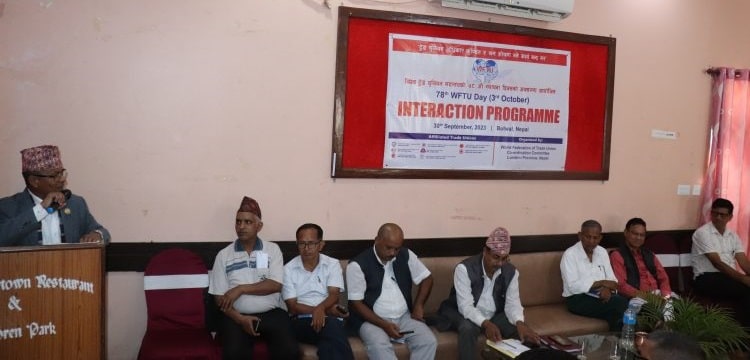 बिश्व ट्रेड युनियन महासङ्घको ७८ औं स्थापना दिवसको अवसरमा बिश्व ट्रेड युनियन लुम्बिनी प्रदेश समन्वय समितीले आज बुटवलमा आयोजित अन्तरकृया कार्यक्रममा लुम्बिनी प्रदेशका सभामुख घर्ती मगरले समाजबादी क्रान्तिबाट मजदुर बर्गको हक अधिकार स्थापित हुने भएकाले त्यस तर्फ अघि बढन अपिल गरे ।