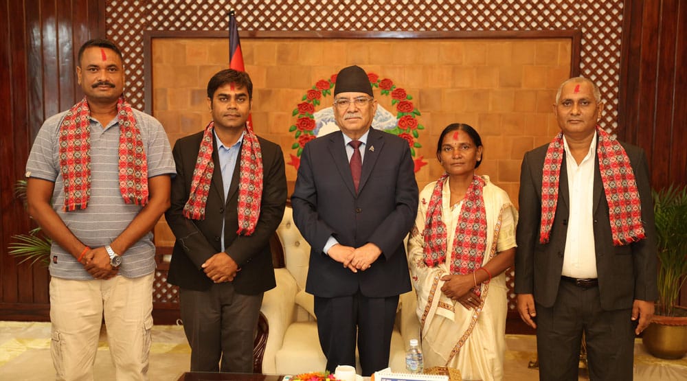 प्रधानमन्त्री निवास बालुवाटारमा आज प्रधानमन्त्री पुष्पकमल दाहाल ‘प्रचण्ड’सँग भेट गरी उनीहरु एमाले परित्याग गरी माओवादी केन्द्र प्रवेश गरेका हुन् ।