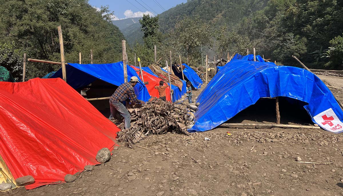 पुराना परम्परागत शैलीमा निर्माण भएका अधिकांश घर भत्किएपछि विस्थापितलाई चिसोबाट जोगाउन र सुरक्षितरूपमा राख्न सशस्त्र प्रहरीले त्रिपालको व्यवस्था गरेको छ ।