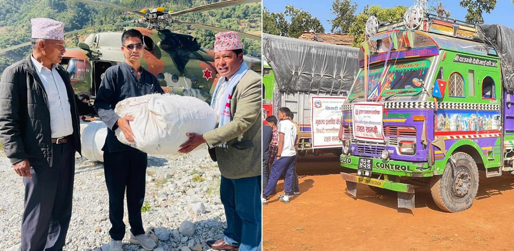 राहत सामग्री लिएर बुटवल उपमहानगरपालिकाबाट सुरेन्द्र बहादुर कार्की, दीपक राना, पत्रकारहरु ललित पाण्डे र कपिल अधिकारी जाजरकोटको नलगाड पुगेका हुन्।