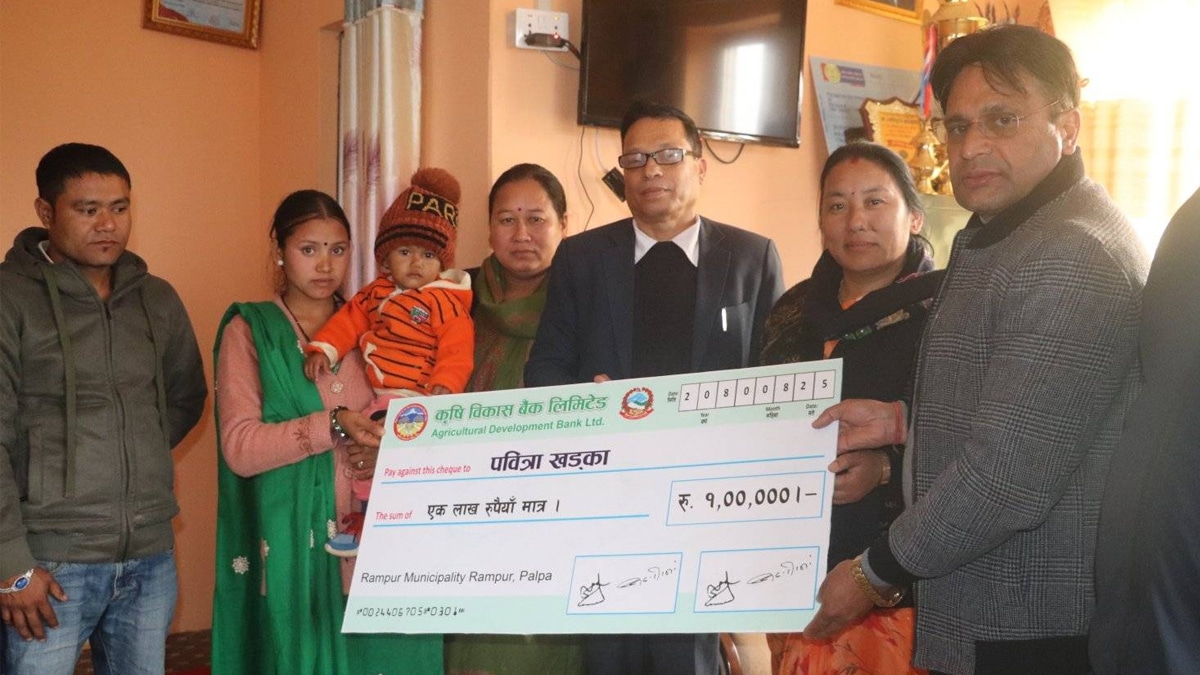 दाङको शान्तिनगर गाउँपालिका–१ नयाँबस्ती घर भएका खड्काकी श्रीमती पवित्रालाई नगरपालिले सो रकम प्रदान गरेको हो ।