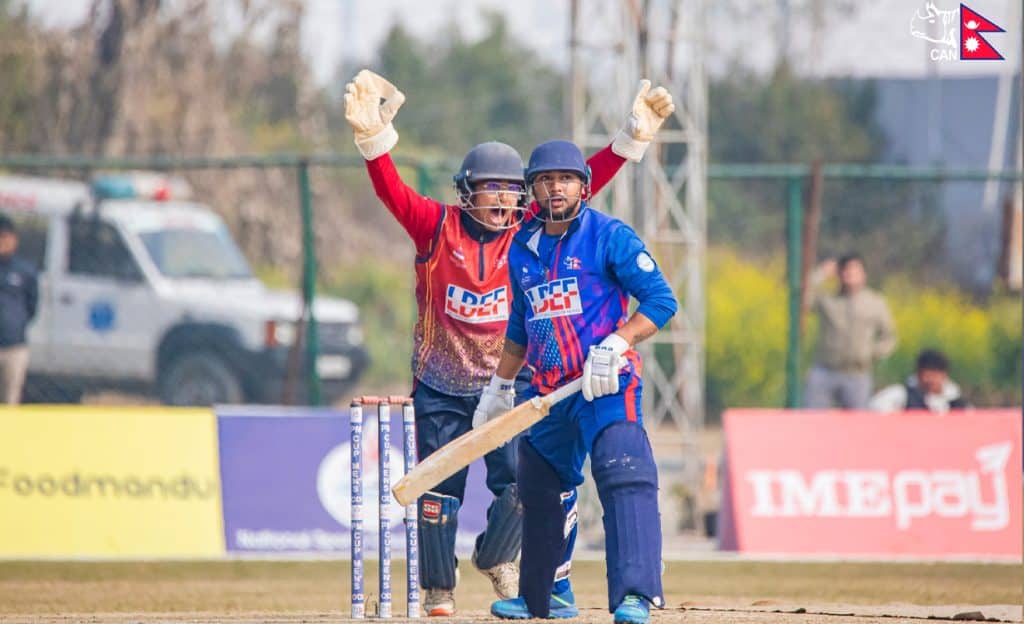 सौजन घिमिरे ६९ बलमा २ चौका र २ छक्कासहित ४३ रनमा आउट भए । मिनाश थापा ३४ बलमा ५ चौकासहित २५, समिर कार्की शून्य, आशिष भट्टराई १०, सोनु अन्सारी १७, फिर्दोस अन्सारी ४, भुपाल लुइटेंल ५ र कमल खत्री शून्य आउट भए ।