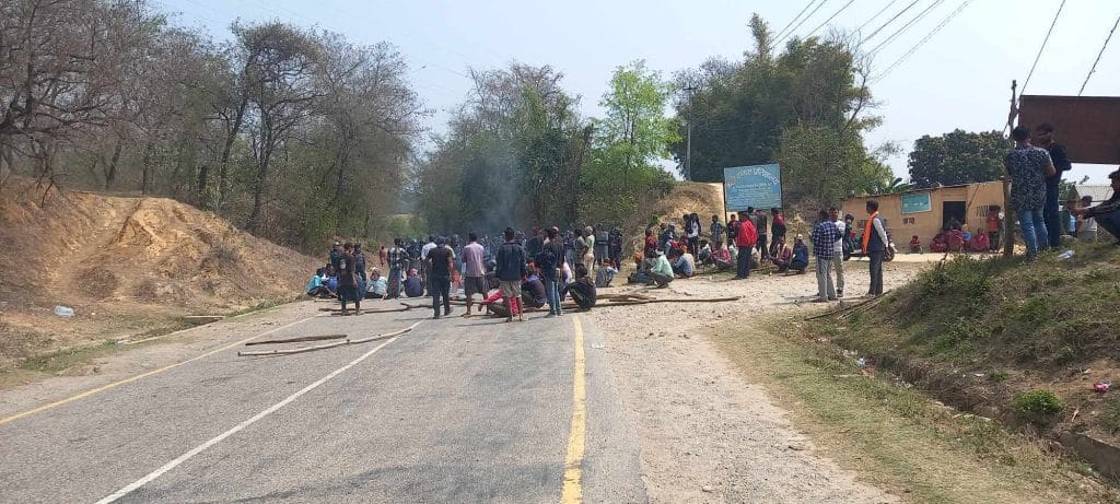 दाङमा बसको ठक्करबाट २ जनाको मृत्यु पछि स्थानीयले गरे राजमार्ग अवरुद्ध