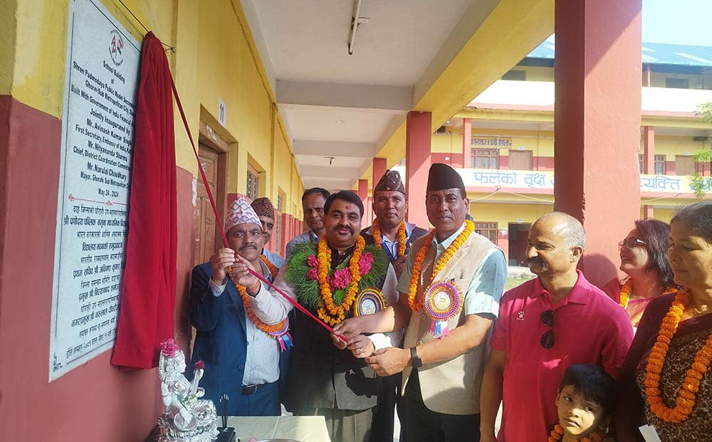 देउखुरी । घोराही उपमहानगरपालिका–१५ भरतपुरस्थित पद्मोदय पब्लिक नमूना माविका लागि भारतीय राजदूतावासको सहयोगमा निर्मित ३६ कोठे भवनको शुक्रबार उद्घाटन गरिएको छ ।