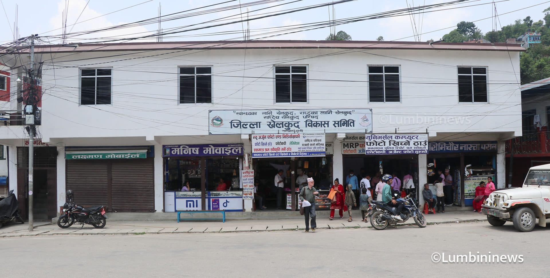 जिल्ला प्रशासन अगाडी बनेको जिल्ला खेलकुदको भवनका सटरहरु व्यवसायिक प्रयोजनका लागि भाडामा लगाइएका छन् । तर सेवाग्राहीको सहजताका लागि बनेको भवनमा कार्यालय प्रमुख र कर्मचारी नहुँदा दैनिक कामकाज ठप्प जस्तै छन् ।