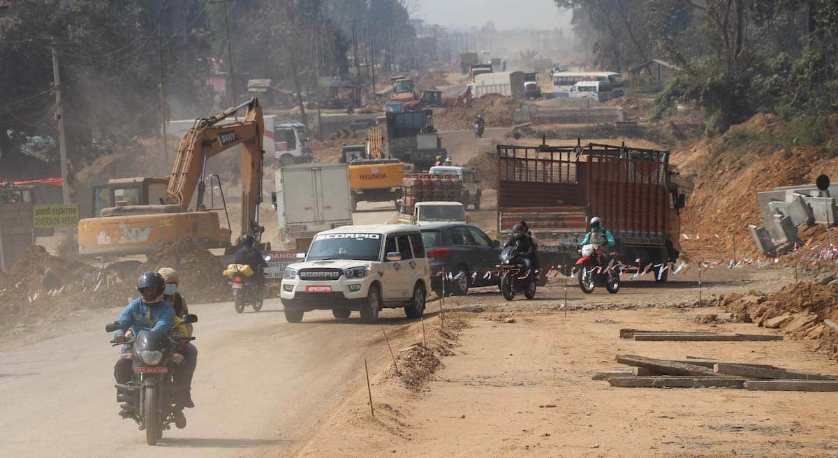 ठेकेदारले वर्षाको कारण तेर्स्याउँदै कात्तिक १५ पछि काम थाल्ने प्रस्ताव गरेको छ । जिल्ला प्रशासनले खाल्डाखुल्डी पुर्न, रोलर लगाएर सम्याउन र पहाडी क्षेत्रमा (दाउन्ने र थुम्सी) पर्खालको काम फटाफट गर्न निर्देशन दिएको छ । -इकान्तिपुरबाट