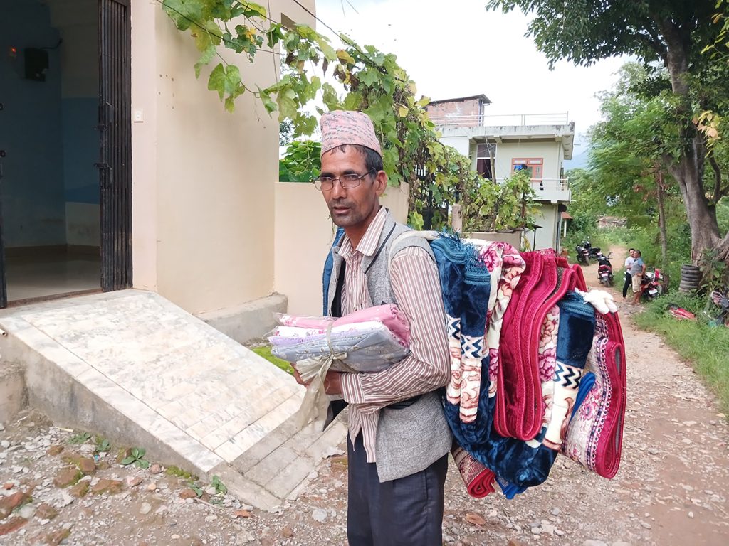 ‘अहिले छोराछोरी हुर्केबढेसँगै परिवारको खर्च बढ्दै गयो, थोरै खर्चले घरखर्च धान्न मुस्किल छ, व्यापार भने पहिलाको तुलनामा घट्दैछ, एक व्यक्तिको कमाइले जीविका चलाउन हम्मेहम्मे परेको छ, बाध्यताले गाउँगाउँमा राडीपाखी, गलैँचालगायतका कपडा बोकेर व्यापारमा हिँडेछु’, उनले भने ।